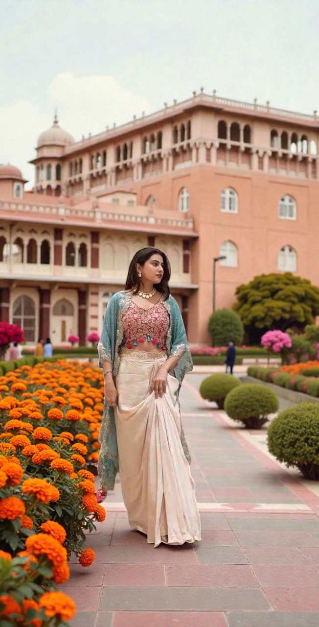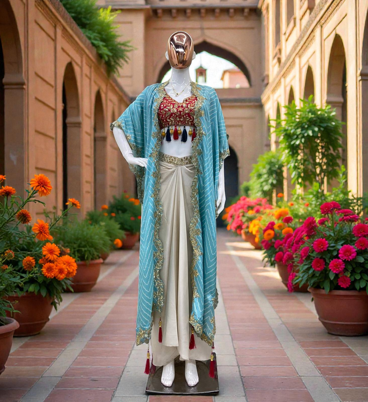 Aurelia Draped Silk Set with Shrug
