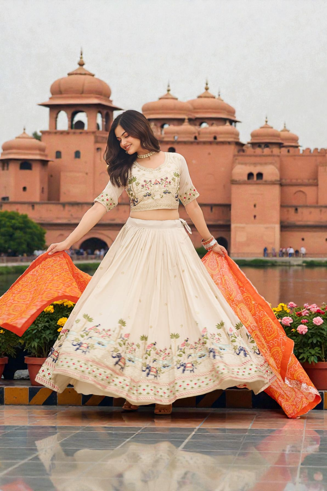 Ivory Grace Orange Lehenga Choli Set