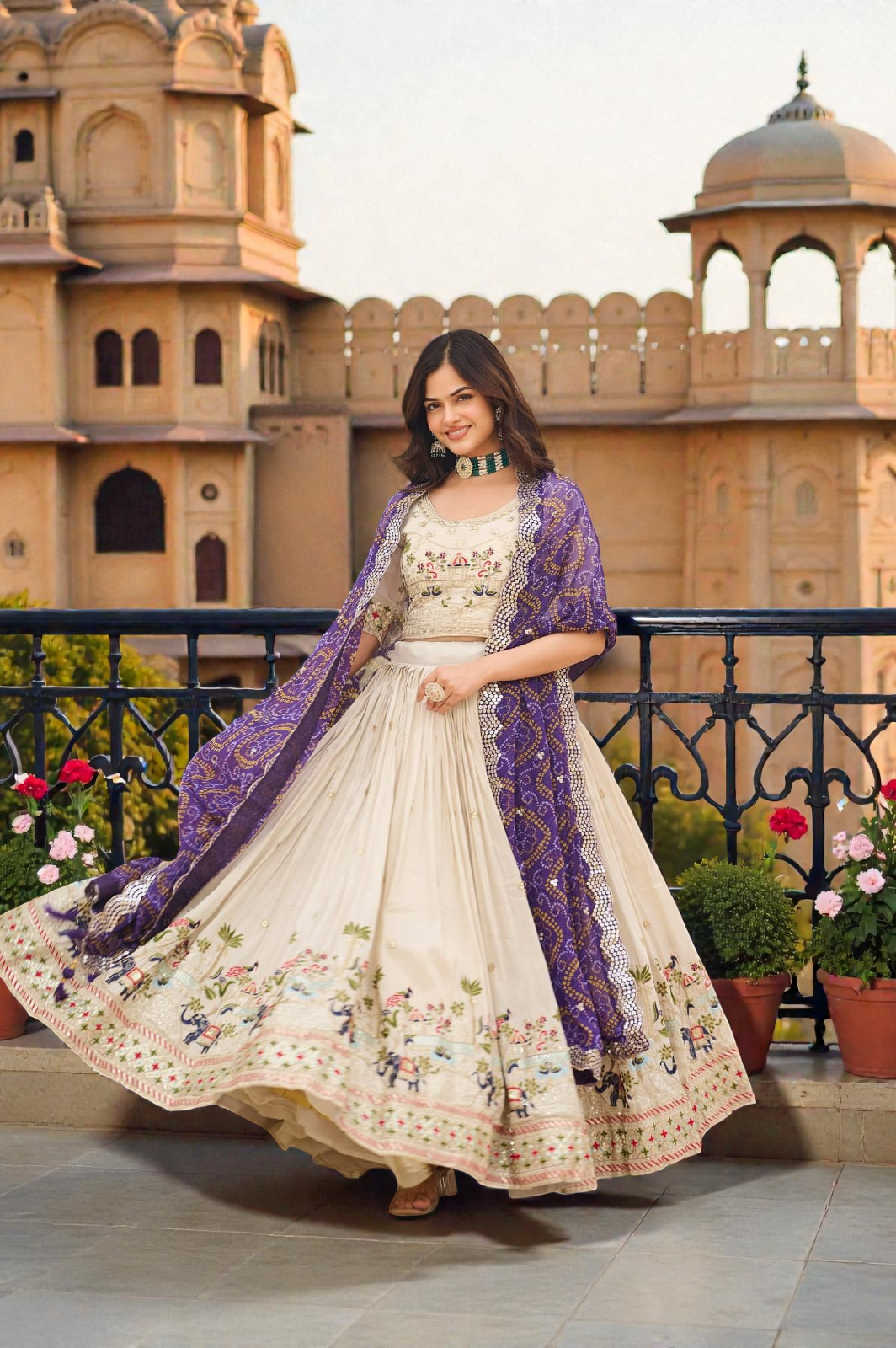 Ivory Grace Purple Lehenga Choli Set