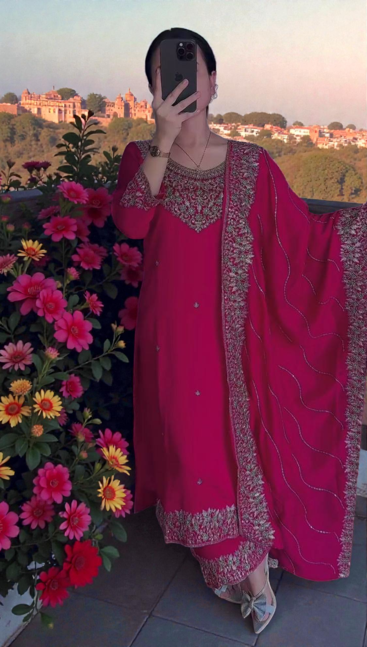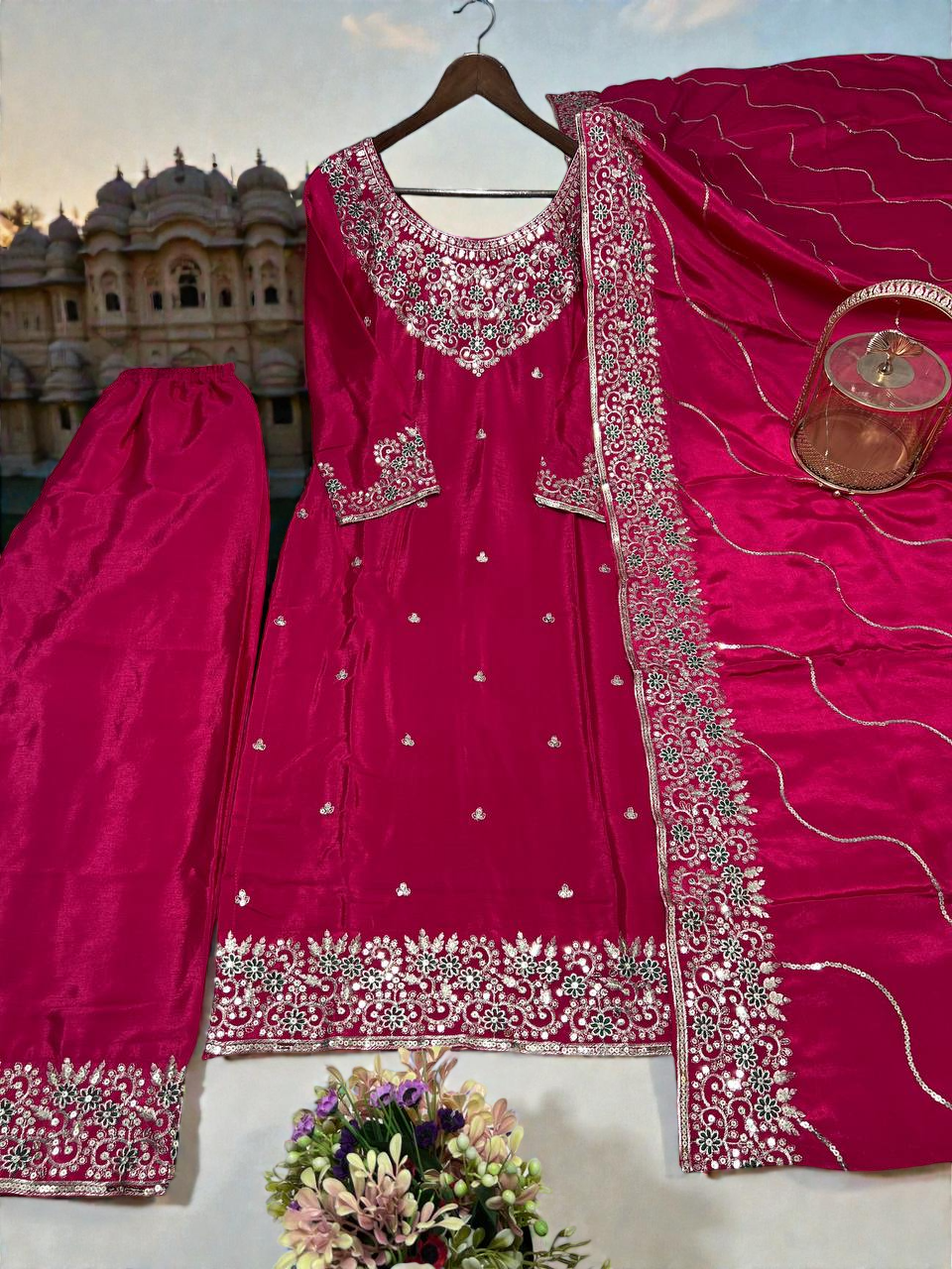 3 PIECE LONG KURTI WITH PLAZZO AND DUPATTE