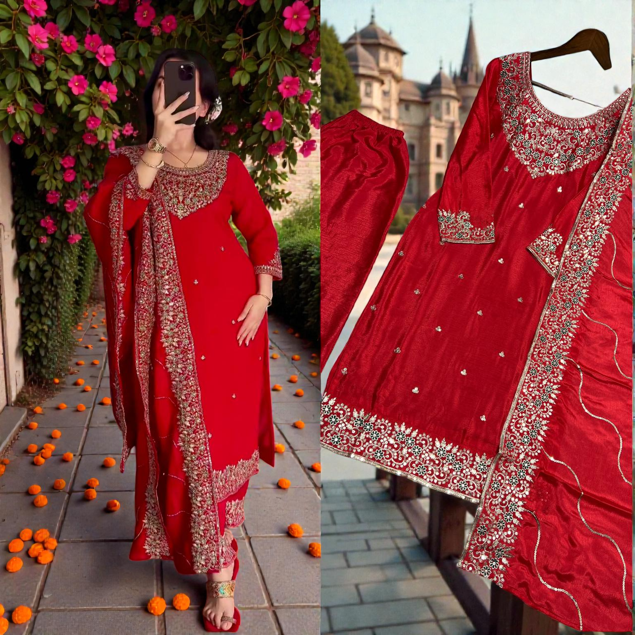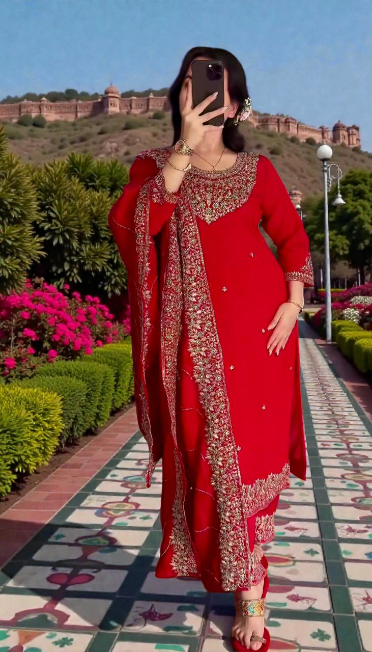 3 PIECE LONG KURTI WITH PLAZZO AND DUPATTE