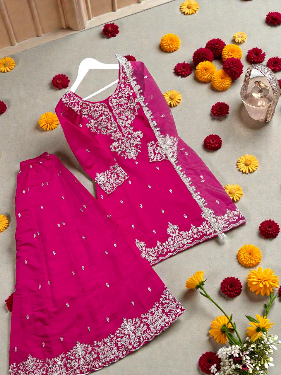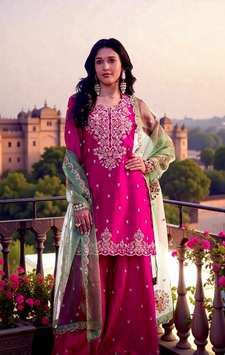 STYLISH KURTI, PLAZAA AND DUPATTA WITH BEAUTIFUL EMBROIDERY SEQUENCE WORK*