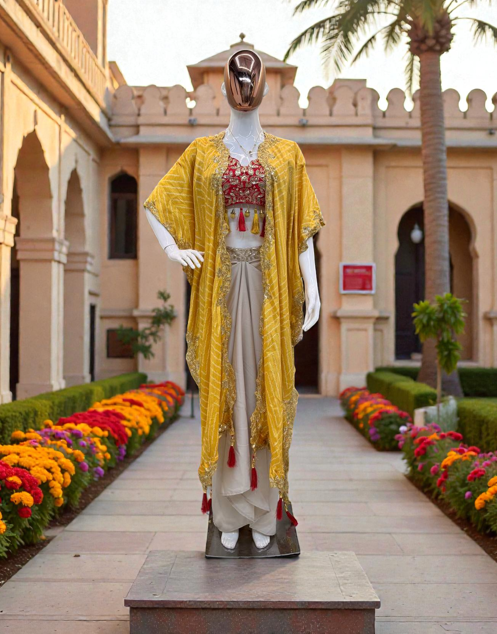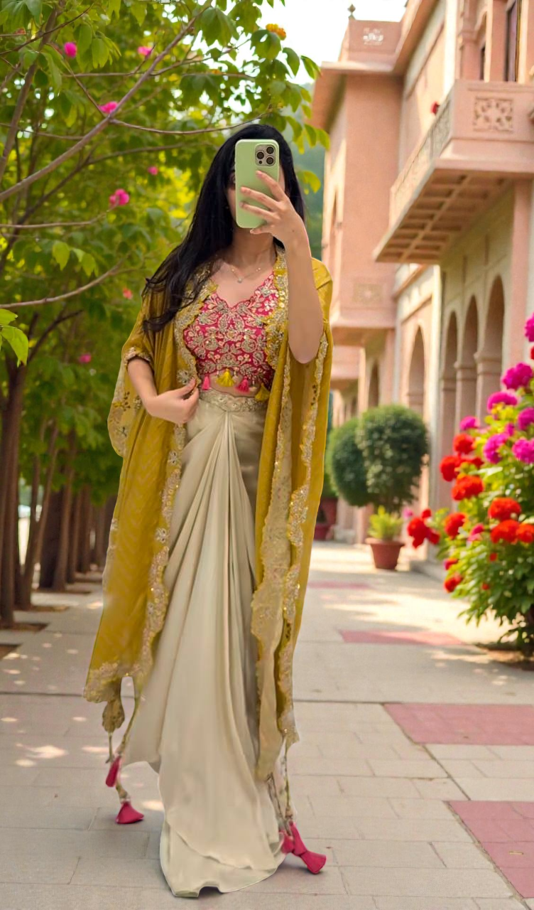 Elysia Silk Draped Skirt Set with Shrug