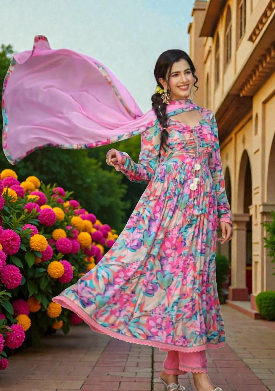 • Dupatta Fabric: Heavy Chinon Silk with digital print
